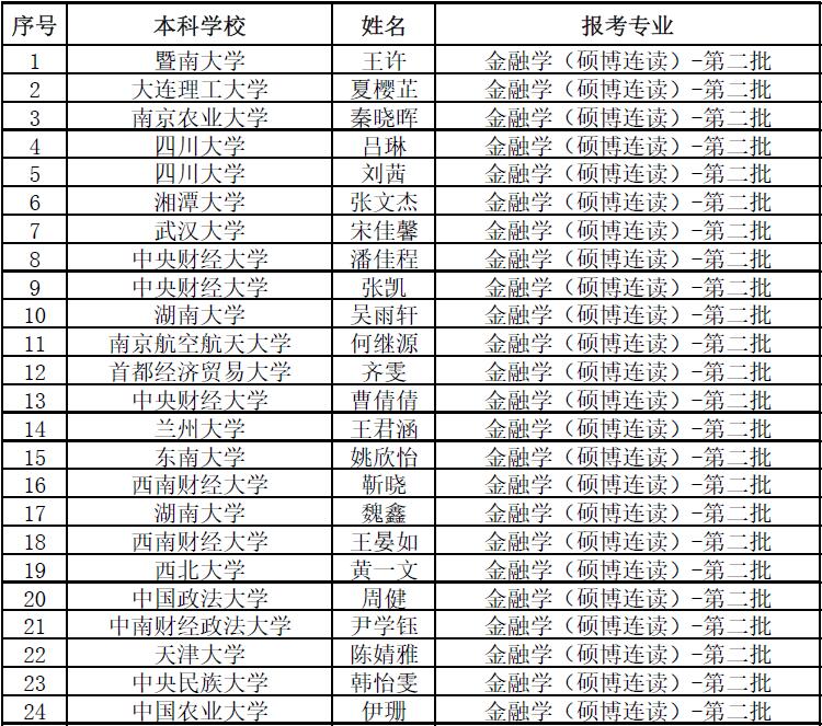 第六届“全国卓越金融学子夏令营(硕博第一批)”拟入营名单