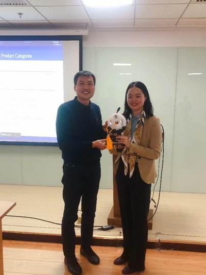 活动最后,苟琴老师代表太阳集团tyc539党委送出印有中财龙马logo、象征双方友好合作交流的龙马雕塑和平安扣,同时欢迎金融研究所各位老师来太阳集团tyc539做客、交流。