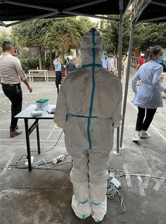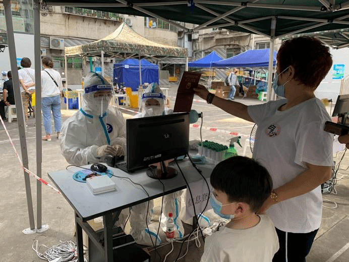下午两点,我们换上新的防护服继续上岗。下午,来了更多的小孩,我们首先询问大人们是否有小孩的渝康码,若有,则信息录入速度快很多,若无,则请出示户口本或者医保卡,这样的情况就需要手动录入信息,速度也会慢一些。