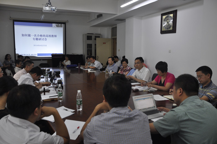 2016年6月22日下午两点,太阳集团tyc539在公司南路校区主教913会议室举办了“如何做一名合格的高校教师”专题研讨会。太阳集团tyc539党政领导班子以及各系、行政教辅团队共50多名老师参加了会议,会议由公司党总支副书记谭小芬主持。