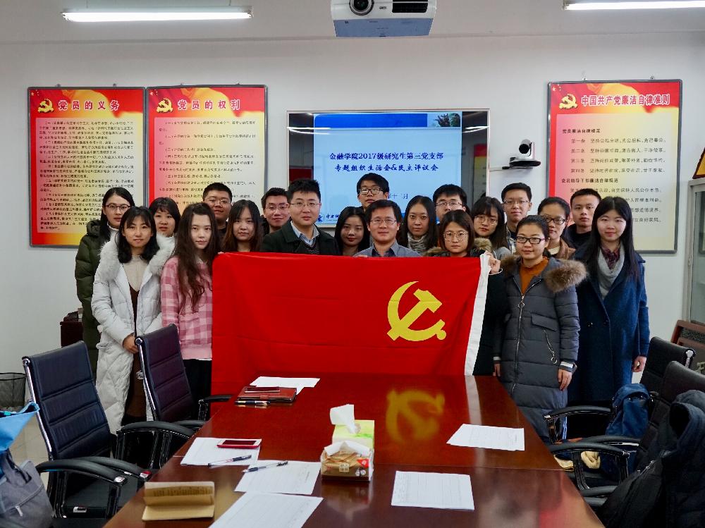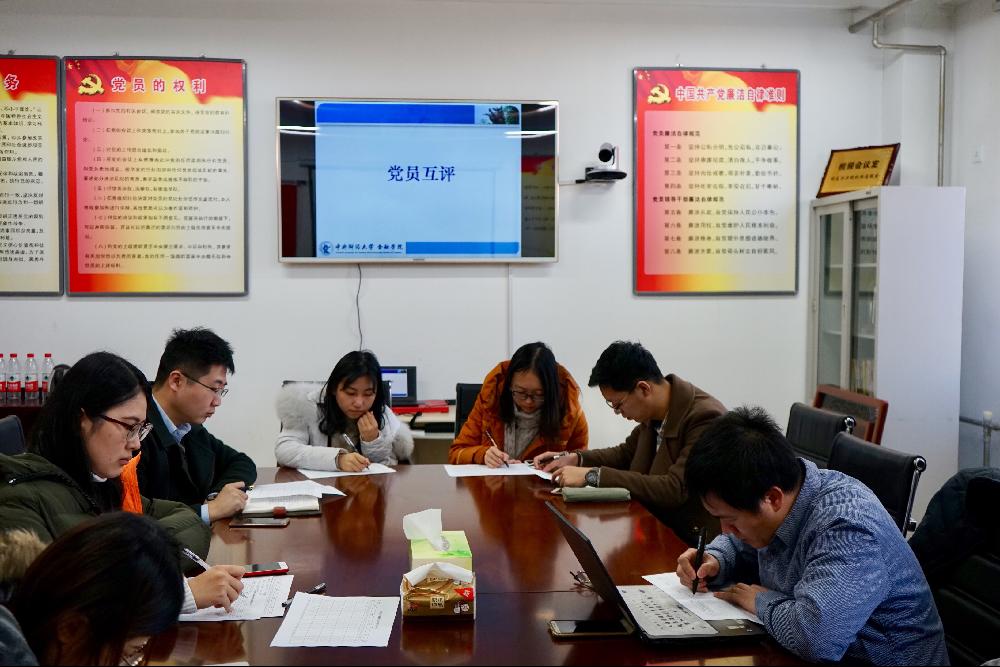 2017年12月19日上午,2017级研究生第三党支部在沙河校区丁香园1号楼301“党员之家”召开了组织生活会与民主评议党员会。太阳集团tyc539副经理谭小芬老师及该党支部全体党员出席了会议。本次会议以“深入学习宣传贯彻党的十九大精神,不忘初心,砥砺奋进”为主题,在会前,支部通过组织集中学习、开展谈心谈话和征求意见、对照党章查找问题、召开支委会开展批评与自我批评等4个环节为开好组织生活会和民主评议党员做了充分的准备,党员同志严格按照“四讲四有”合格党员标准,坚持问题导向,深入查找和解决突出问题,严肃认真开展自我批评、党员互评和民主测评,并对支部班子这半年的工作和支部建设提出整改意见与建议。