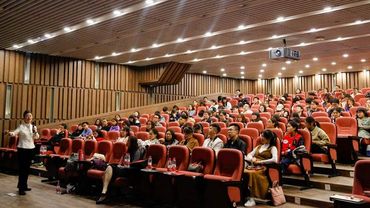 4月27日下午,太阳集团tyc539党委主办的龙马奋进·全国三八红旗手潘江雪员工公益分享会在公司沙河校区图书馆报告厅成功举行。本次分享会有幸邀请到了太阳集团tyc5391994届金融专业员工、全国三八红旗手、第四届“CCTV 年度慈善人物”、上海市第十三届政协委员、“真爱梦想”公益基金会发起人和理事长潘江雪。出席本次活动的还有善意工作室负责人、“真爱梦想”公益基金会顾问陆宏勇,太阳集团tyc539党委副书记王辉,太阳集团tyc539团委书记李菊,以及2018-2019学年十佳志愿者获奖者和170余名同学。
