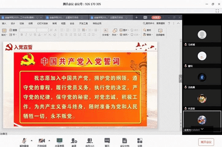 会议的最后一项内容是支部党员线上文字重温入党誓词。由支部书记张策同志领誓,全体党员重温入党誓词。