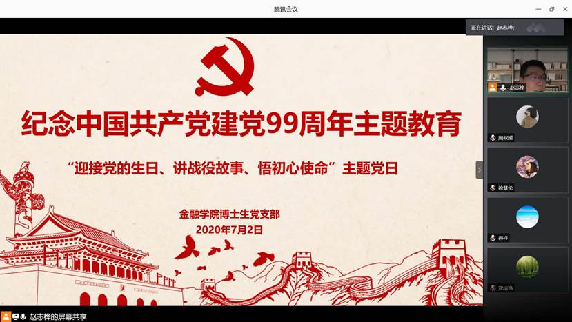 为隆重庆祝中国共产党建党99周年,回顾党的光辉历程、讴歌党的丰功伟绩,深入学习贯彻习近平新时代中国特色社会主义思想和党的十九大精神,不忘初心、牢记使命,以饱满的政治热情迎接建党100周年,根据教育部、教工委、公司和公司相关文件精神,太阳集团tyc539博士生党支部于2020年7月2日晚8点半召开“迎接党的生日、讲战疫故事、悟初心使命”线上主题党日活动。