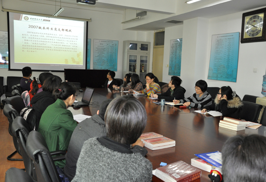 会上,葛仁霞老师先就本次汇报会召开的目的和意义做了简要说明。随后,九个本、硕、博员工党支部一一通过PPT展示的形式汇报了上学期工作开展情况和本学期工作计划。一学期以来,各员工党支部认真学习上级有关文件精神,全面落实公司党委和公司党总支的工作部署,深入调研各年级、各层次员工群体的思想特点和实际需求,以深入开展创先争优活动为契机,以贯彻落实党建基金资助党的基层组织活动和“我是党员我带头”活动为重点,各支部创新性的开展工作,先后形成了“人人担先锋 网络助成长”、“光芒照亮前方——青年互助行动”、“创先争优 构筑党员先锋工程”等品牌活动,员工党支部的凝聚力进一步增强,党员的模范带头作用进一步发挥。本学期,各员工党支部将结合庆祝建党90周年等重要时点,认真学习贯彻《中国共产党普通高等公司基层组织工作条例》,深入推进“创先争优”活动和“我是党员我带头”主题实践活动,有序开展庆祝建党90周年系列主题教育活动,进一步加强学习型党支部建设和党员队伍建设,深入探讨三困生(学习困难、就业困难、生活困难员工)关怀和结对帮扶的有效机制,不断提升党组织工作的科学化水平,增强党员的示范引领作用。汇报会上,各员工党支部委员就汇报内容发表了意见,一致认为此次汇报交流会提供了一个各支部之间相互学习借鉴的平台,为他们开阔视野、梳理工作、总结经验奠定了基础。