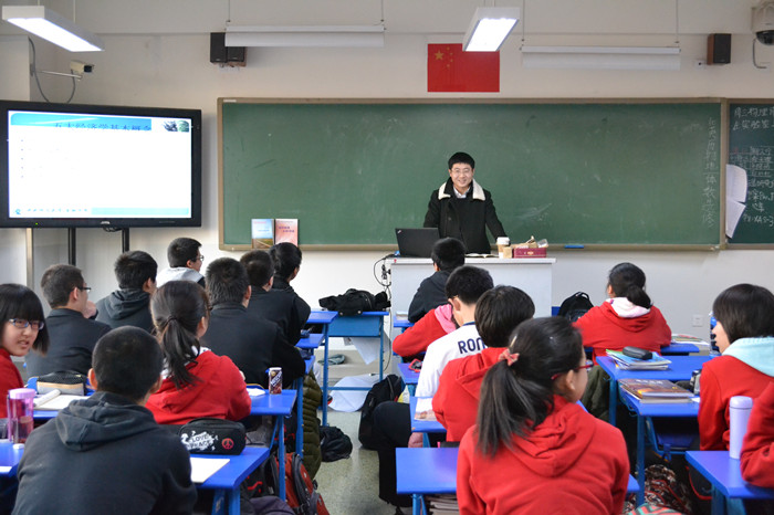 为培养党员先进性,发挥党员的模范带头作用,增强党员的责任感与奉献精神,2012级党支部在北师大附属实验中学开设经济学选修课,为党支部成员提供展现自我和服务奉献的平台。2014年3月5日,党支部书记刘勇老师与廉昊宇、王顺龙等同学一同前往北师大附中,进行第一堂课的讲授。