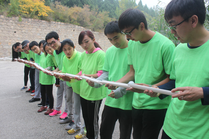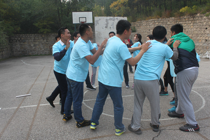 2015年10月17日,公司金融专业在职研修班52名同学,齐聚在公司门口,趁着北京初秋的清爽天气,前往北京昌平区明皇渡假山庄开始了为期一天的破冰拓展训练。一路上尽是浓浓的秋意,火红的枫叶和金黄的银杏,满树的柿子和熟透的苹果,大家渐渐远离了城市的雾霾和喧嚣,经过一个多小时的车程,顺利到达拓展基地。