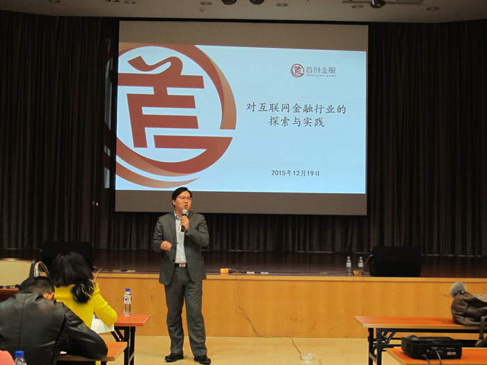 首先岳总对首创集团以及首创金服的成立、发展和产品进行了简要介绍,之后便开始了今天的主题讲座“对互联网金融行业的探索和实践”。总共分为两大板块,一是互联网金融行业分析与探索,二是首创金服的互联网金融实践。首先岳总详细讲解了互联网金融的发展,并通过腾讯财付通、京东金融、阿里金融等经典案例分析了互联网金融行业的典型模式;结合美团网和大众点评的合并案例说明了互联网金融行业的并购重组;同时针对前段时间“e租宝”事件提醒了这个新兴行业中的风险。之后岳总就首创金服的管理机制、部门设置、运营模式从操作上进行了详细解读。现场同学均十分认真地聆听,生怕错过了每一个细节。