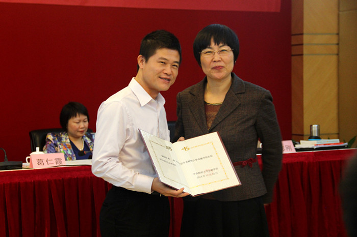 葛仁霞书记向光大银行海口分行副行长尤小嵘颁发业界导师聘书