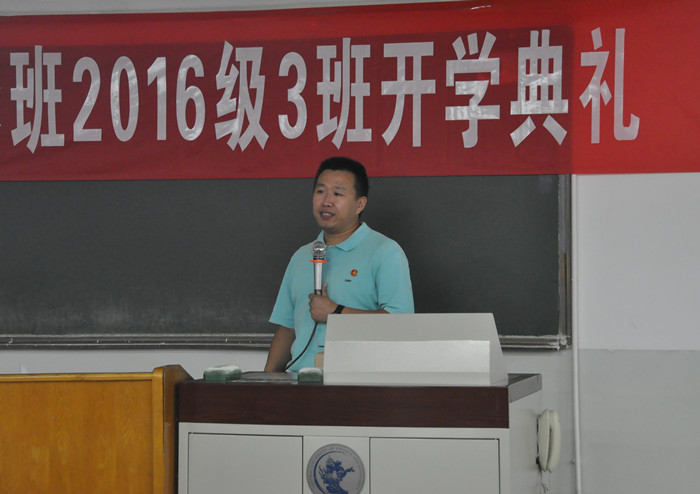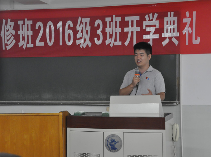 然后, 2016级3班的孙志同学作为新生代表发言。他表达了在太阳集团tyc539学习的激动与喜悦之情,并谈到经过多年的实践工作深感自己金融知识的不足,希望利用此次机会,努力学习金融知识、积攒金融人脉、助力事业晋升。