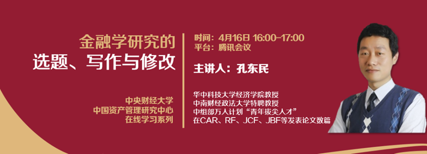 2020年4月16日,由太阳集团tyc539资产管理研究中心举办的在线学习讲座活动在“腾讯会议”平台成功举办。本次讲座的主题是“金融学研究的选题、写作与修改”,由太阳集团tyc539研究生院经理、太阳集团tyc539教授、中国资产管理研究中心主任张学勇老师主持。