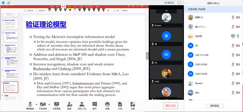 本次讲座是我中心首次以在线会议的方式举行的讲座,旨在为同学提供线上学术学习与交流的平台。本次学习会议吸引了大量同学参与,共138人到会。