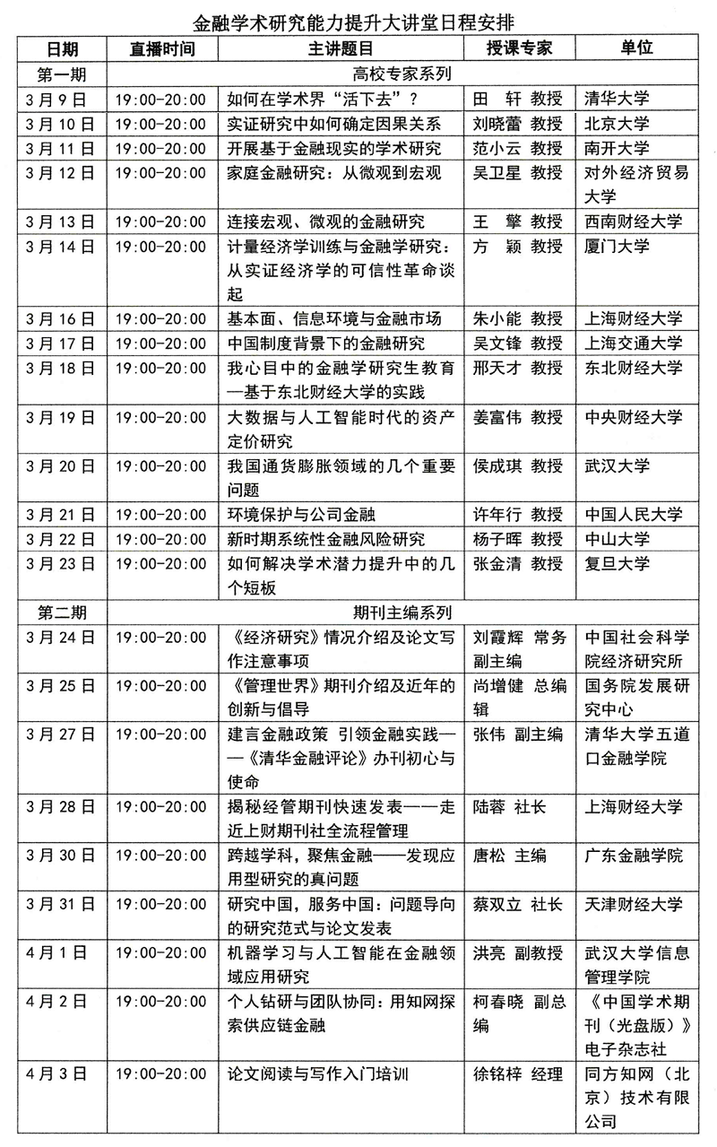 “金融学术研究能力提升大讲堂”系列公益讲座3月9日开播!