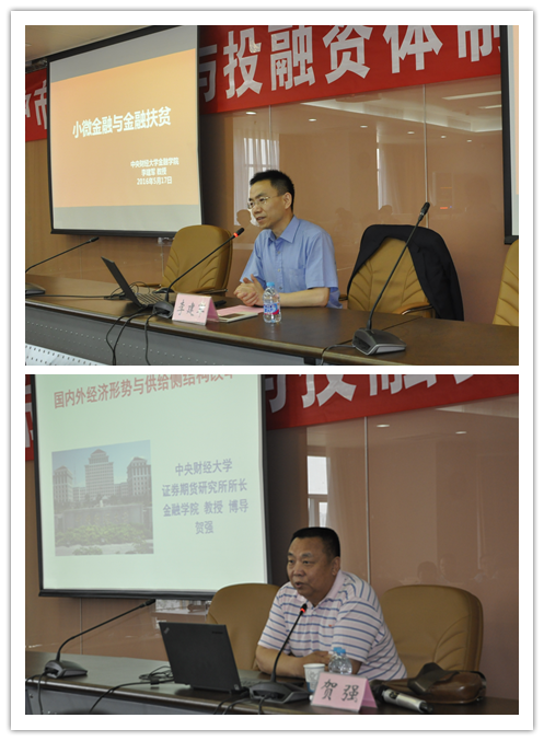 517日由公司李建军教授和贺强教授主讲。李建军教授结合巴中市的金融环境和经济发展状况重点讲授了小微金融企业的发展模式和路径以及金融精准扶贫的具体途径;贺强教授作为全国政协委员从宏观角度谈论了国际和国内的经济形势并重点谈了我国宏观调控由需求侧向供给侧结构性改革的情况,并提到全国政协对类似巴中市这样经济相对不发达地区的重视。