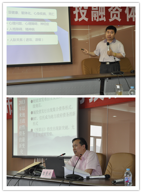 519日由首都师范大学田宝副教授和公司财政公司温来成教授主讲。田宝副教授作为心理学专家着重讲授了领导干部在工作中的压力管理与情绪调控,并结合学员面临的心理压力提出了正确的应对方法;温来成教授讲授了地方政府债务与投融资平台改革,通过分析多个国家的改革状况延伸到我国地方政府债务与投融资平台所面临的问题并提出了改革方向和意见。