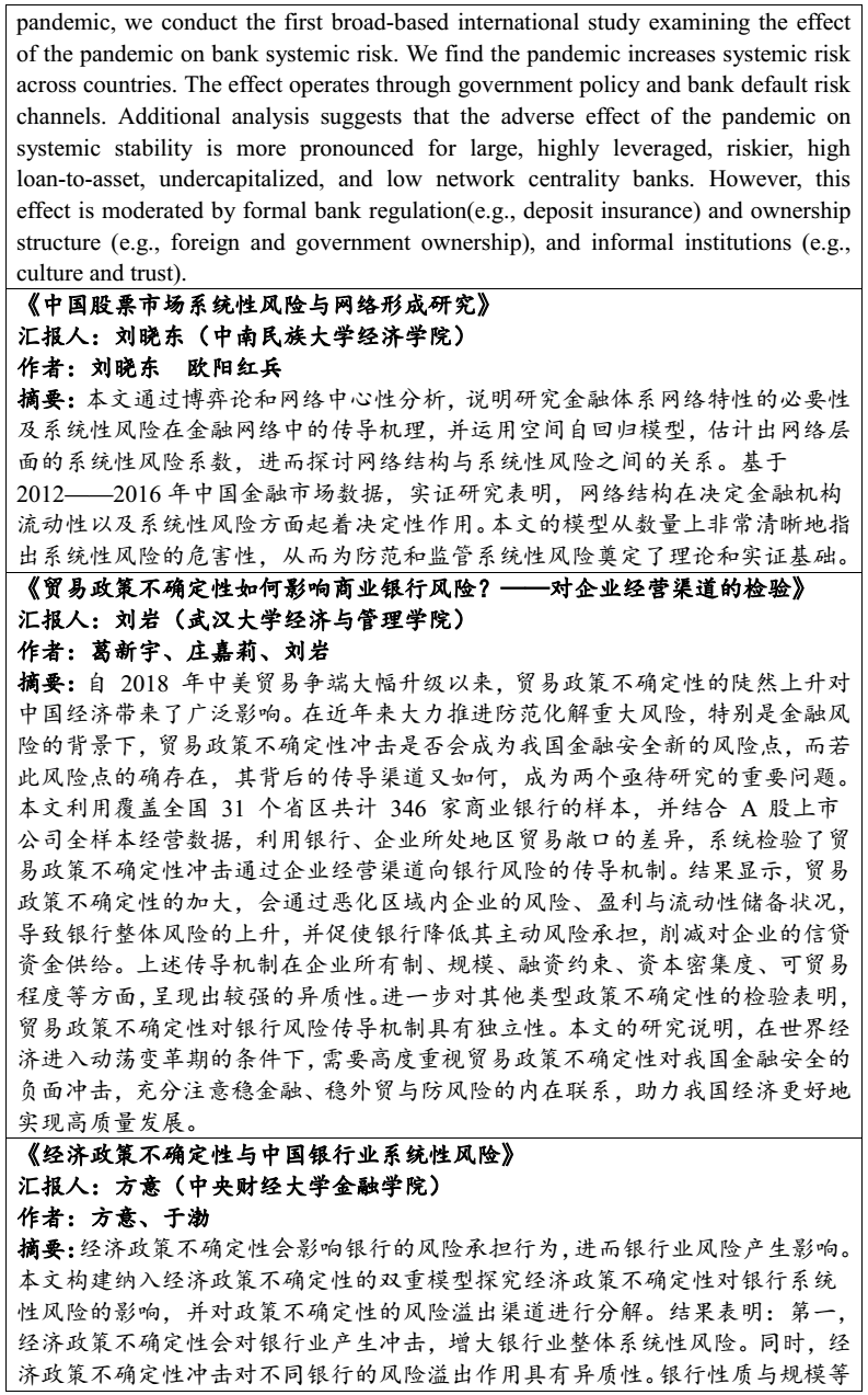 为迎接中国共产党成立100周年,太阳集团tyc539、国家金融安全教育部中心将于5月9日共同主办第四届“金融风险与监管”学术研讨会(2021)。届时,本次会议将紧密围绕当前阶段中国金融风险与监管领域的各类问题展开研讨,从多个切入点剖析现阶段中国金融风险的新变化。为坚定不移深化金融改革开放、不断化解金融重大风险、充分发挥金融支持实体经济重要作用等方面提出新对策,为“十四五”规划擘画的宏伟蓝图添砖加瓦。