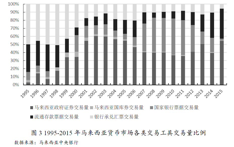 图3 1995-2015年马来西亚货币市场各类交易工具交易量比例