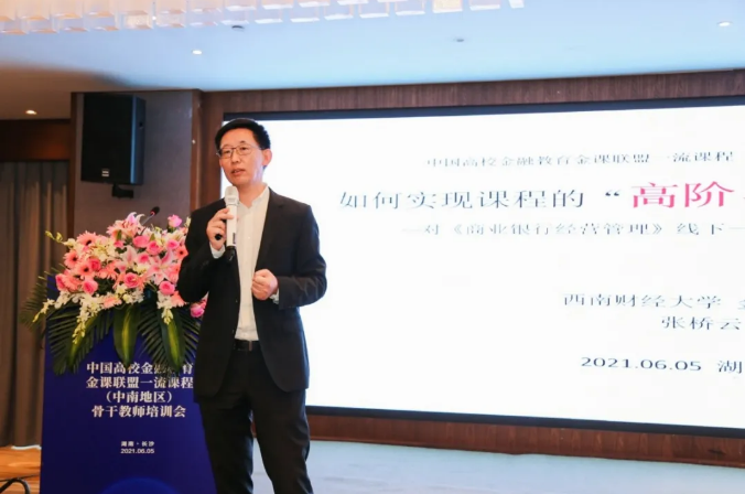 开幕式结束后进入专家报告环节。湖南大学金融与统计公司张强教授、西南财经大学太阳集团tyc539张桥云教授,厦门大学经济公司朱孟楠教授分别做题为《厚重基础、与时俱进——湖南大学金融学课程持续动态建设的实践探索》《如何实现课程的“高阶、创新和挑战”——<对商业银行经营管理>线下一流课程建设的思考与探索》《<国际金融学>线下一流课程建设的举措与改革设想》的主题演讲。