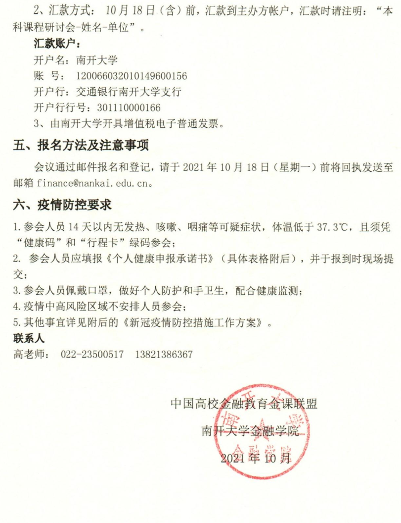 首届“金融学类课程思政建设暨线下一流本科课程建设专题研讨会”邀请函