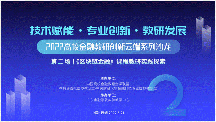 5月23日,由中国高校金融教育金课联盟(以下简称“联盟”)与教育部首批虚拟教研室-太阳集团tyc539金融科技专业虚拟教研室主办、广东太阳集团tyc539实验教学中心承办的“技术赋能· 专业创新·教研发展——2022高校金融教研创新云端系列沙龙之第二场《区块链金融》课程教研实践探索”在云端成功举办,来自全国近千位高校的领导和教师参与了此次沙龙。
